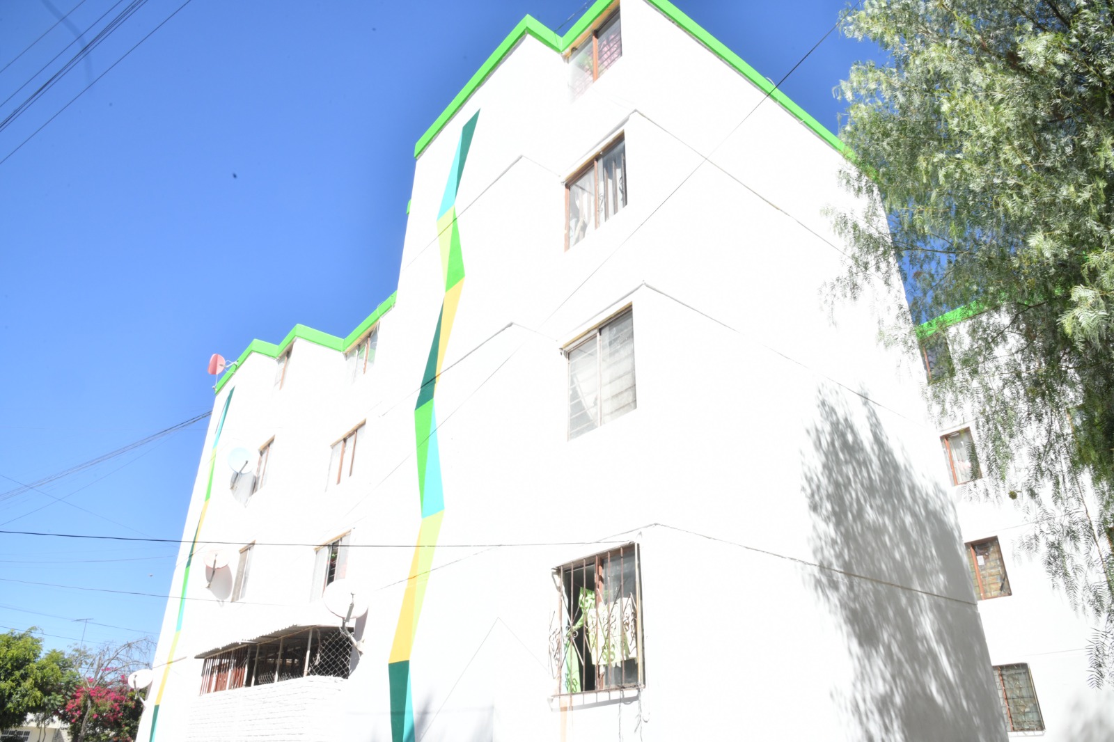 En la colonia Hogares Ferrocarrileros segunda sección, el programa “Empleo Temporal” registra un avance del 95% en la transformación de imagen de edificios departamentales.